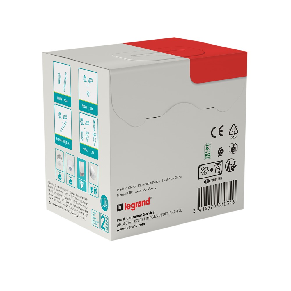 Начало Сензори и датчици Сензори и датчици 048945 Legrand - Детектор за движение открит монтаж 180 градуса - блистер