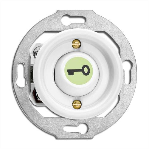 100980 Бутон с подсветка символ ключ 10A,10AX,AC250V Ø 7,0 cm, порцелан, бял, без дек. рамка