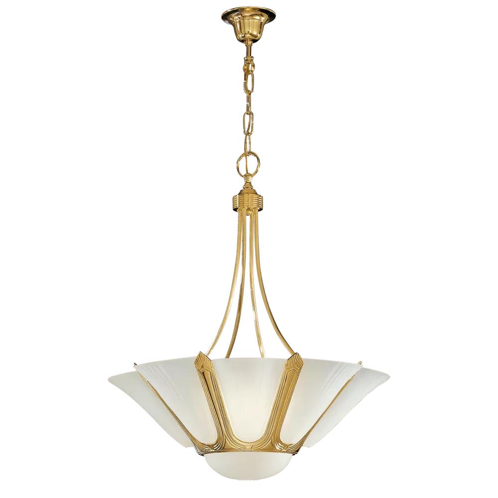 CHANDELIER WITH WHITE GLASS 4xMAX42W E14 Antique brass finish