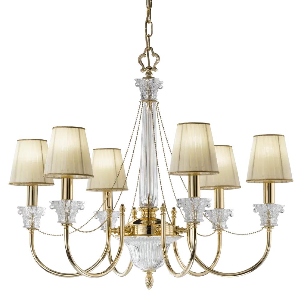 CHANDELIER WITH CRYSTAL AND SHADE 6xMAX42W E14 Gold plated finish