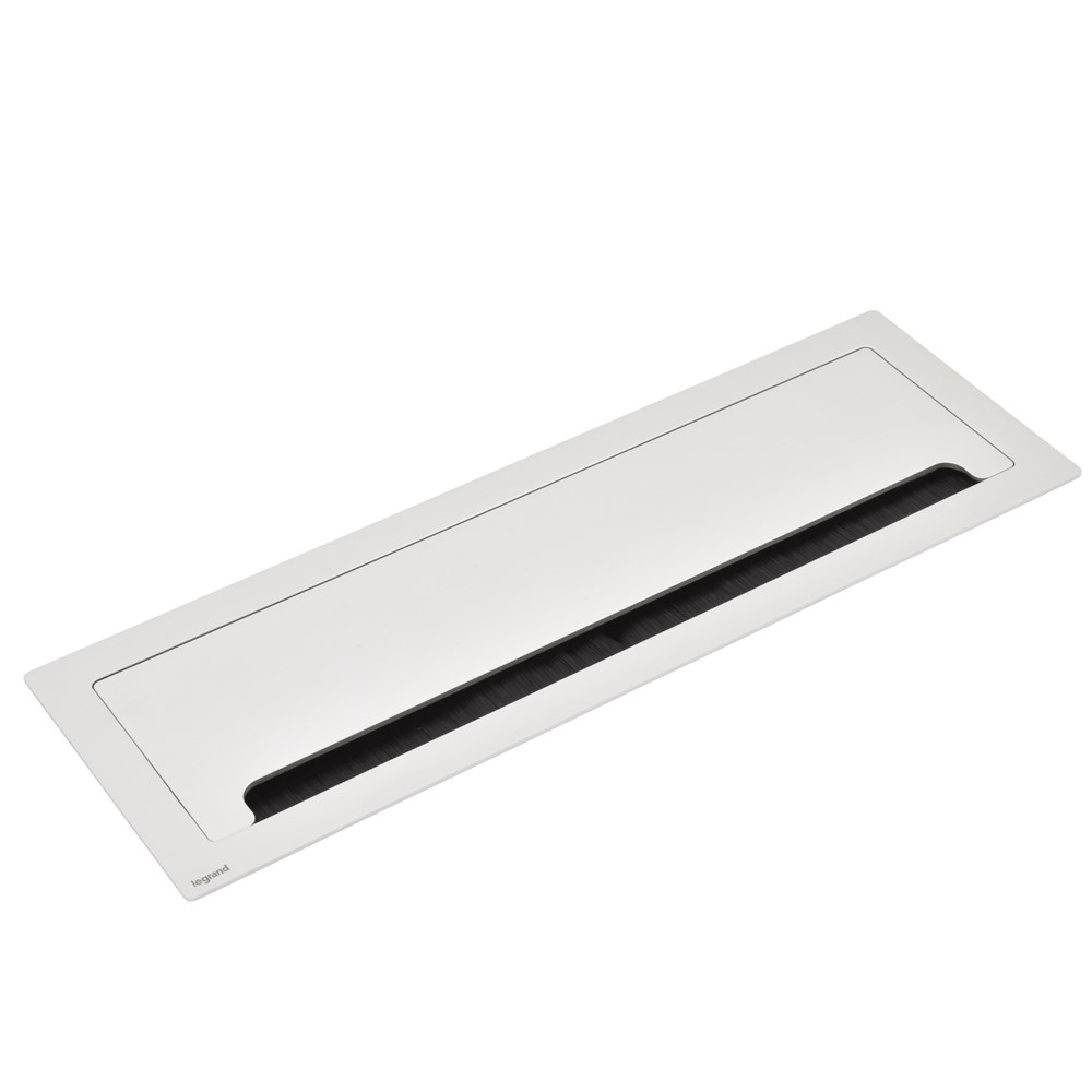 Кутия 385х130 мм за вграден монтаж в мебели, дебелина на плоскостта от 10 до 40 мм. Материал: метал. Лесен монтаж и съхранение на офис модул, разклонител или излишен кабел в работно пространство. Със специална система за фиксиране на офис модули Legrand.