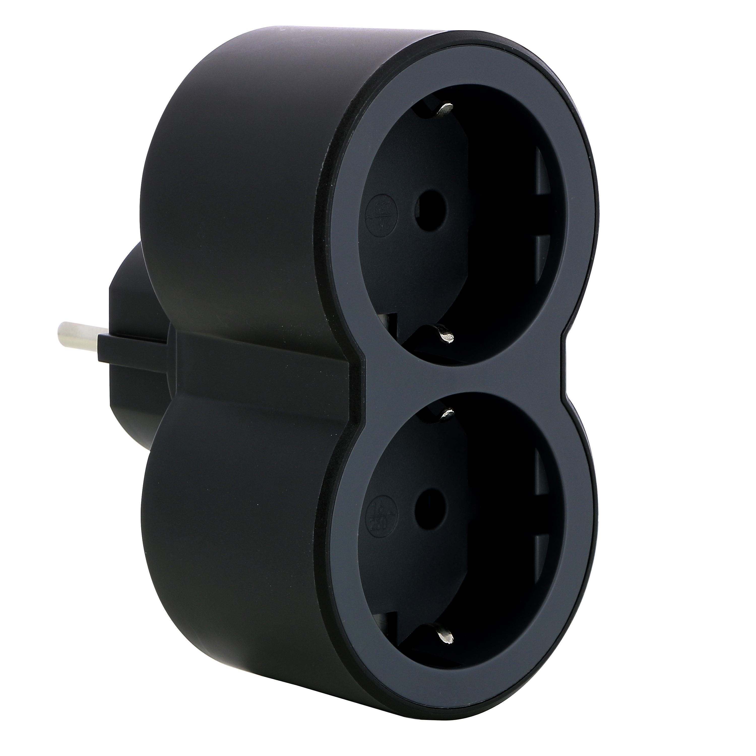 694517 Адаптер STD, шуко, 2P+E, 16A, 2 фронтални гнезда, черно/сиво